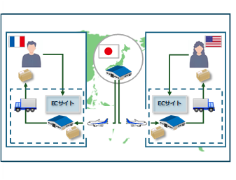 それに比べグローバルECは日本を離れ世界がターゲットとなり、例えばアジアアセアンの各国に現地法人を持つグローバル企業が、現地法人で各国のお客様に対して商いをするので、各国の言語、現地通貨、各国の倉庫からの物流となります。