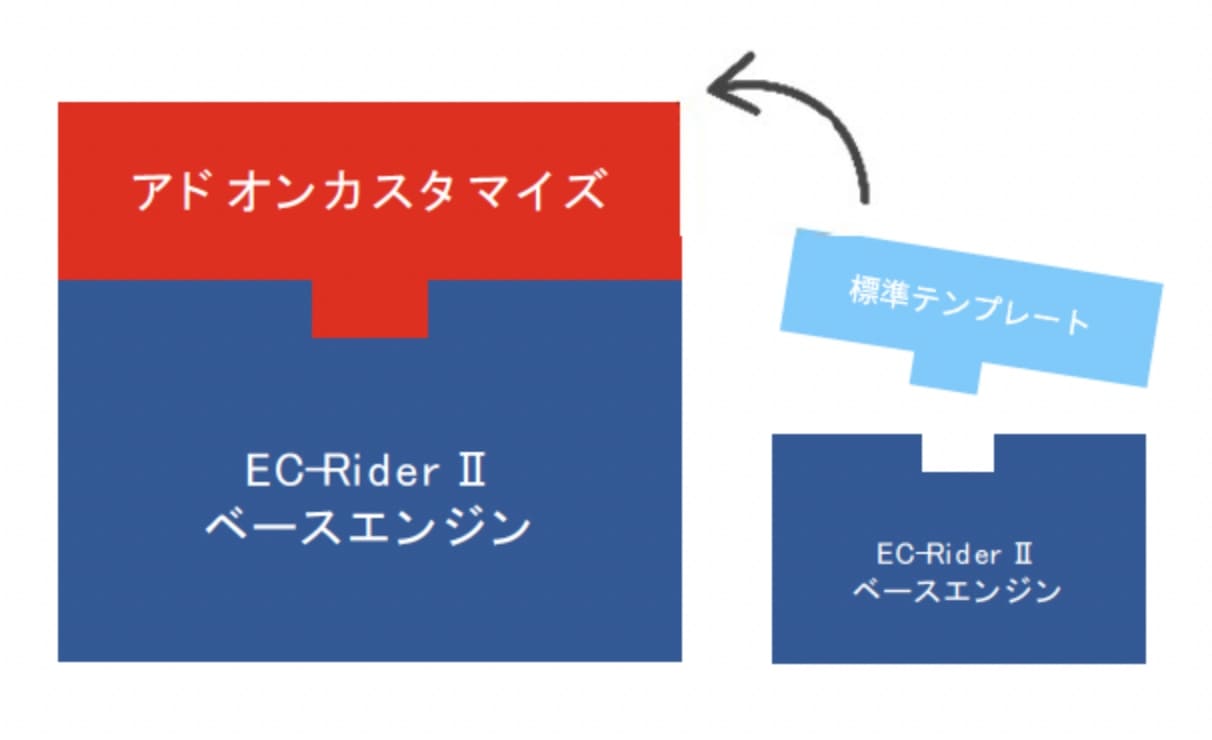 これにより、EC-Rider B2B Ⅱベースエンジンのバージョンアップ時にシステム全体を改修することなくその恩恵を享受することができます。